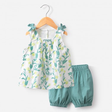 【夏上新】女童套装洋气甜美宝宝背心短裤两件套儿童套装