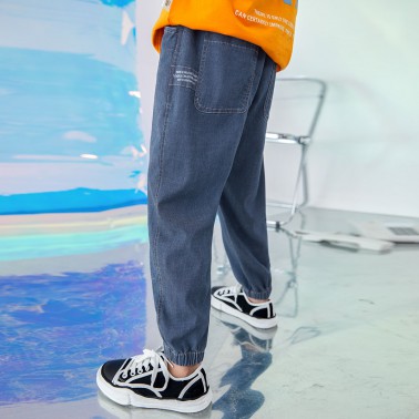 男童裤子夏季新款2021中大童撞色印花压线儿童轻薄防蚊牛仔裤
