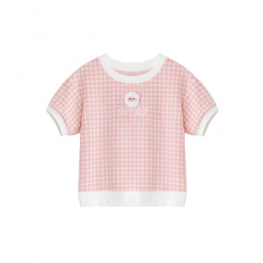 女童绣花T恤21夏季新款童装格子短袖韩版中大童洋气儿童上衣