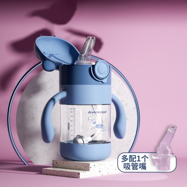 婴儿水杯儿童学饮吸管杯手柄大宝宝防漏防呛防摔背带幼儿园训练杯